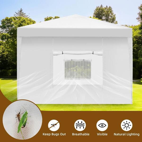 10 ft. x 20 ft. Patio Pop-Up Canopy Tent with 6-Removable Sidewall 4-Mesh Windows, 6-Ropes, 12-Stakes and 1-Roller Bag