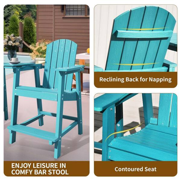 25 in. Tall Adirondack Poly Bar Height Balcony Chairs, Weather Resistant Outdoor Patio Barstool Lifeguard Chair