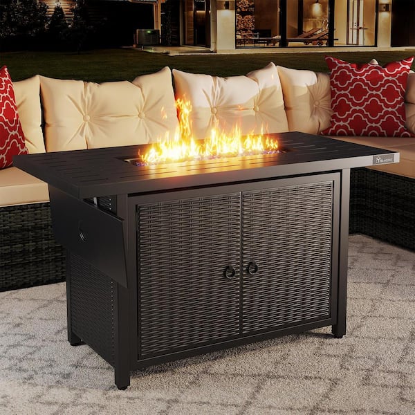 43 in. 50000 BTU Patio Garden Backyard Wicker Base Gas Fire Pit with Ignition Systems, Iron Top, Fire Glass Beads, Cover