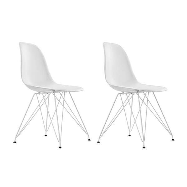 Evelyn White Mid Century Modern Molded Chair with Colored Leg (Set of 2)