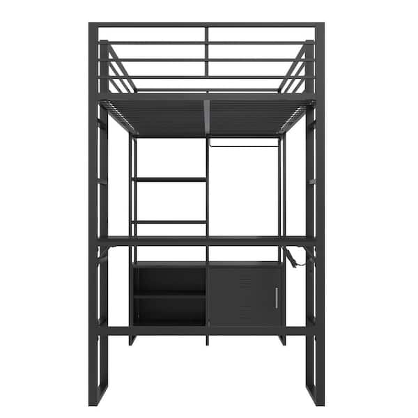 Lyon Twin Loft Bed with Desk and Storage, Black
