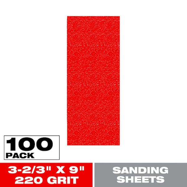 1/3 Sheet 220 Grit Sandpaper Hand Sanding Sheets (100-Pack)