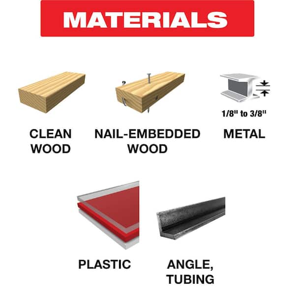 • Ideal for nail-embedded wood and metal cutting from 1/8in-3/8in