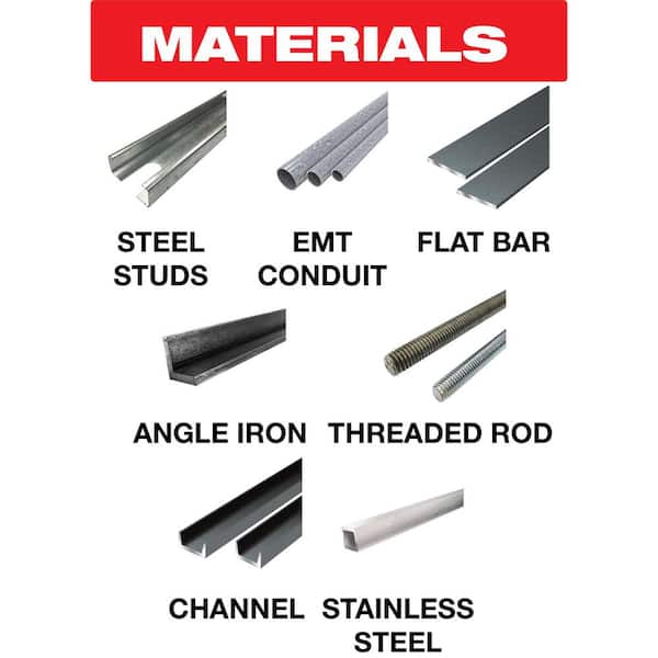 • Cuts stainless, steel stud, angle iron, flat bar, threaded rod
