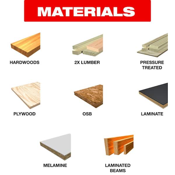 • Cuts hardwood, 2x lumber, pressure treated woods & composites