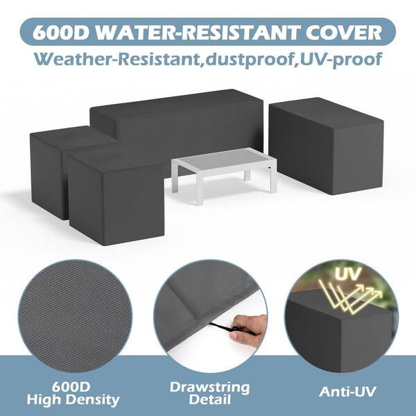 5-Piece Outdoor Aluminum Patio Conversation Set with White Cushions