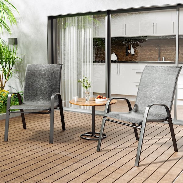 Outdoor Patio Dining Arm Chairs Grey Set of 2