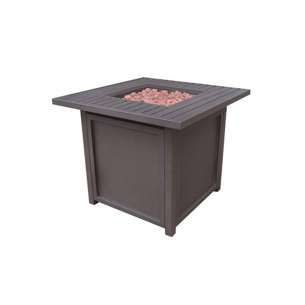 30 in. x 30 in. Square Slat Top Gas Fire Pit Table in Brown