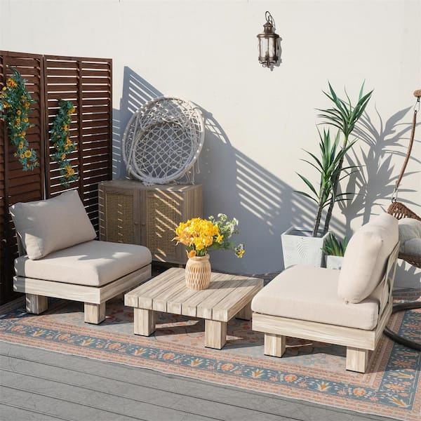Document 3-Piece Aluminum Patio Conversation Set with Beige Cushions, Square Coffee Table