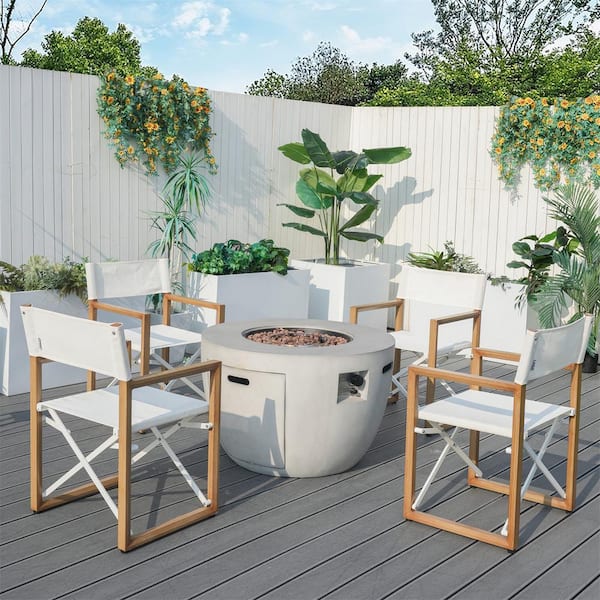 East 5-Piece Aluminum Round Outdoor Dining Set with Grey Composite Firepit Table and Folding Chairs
