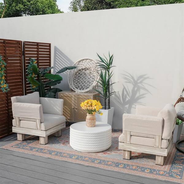 Inquiry 3-Piece Aluminum Patio Conversation Set with Beige Cushions, Arm, 24.25 in. W Round Magnesium Oxide Coffee Table