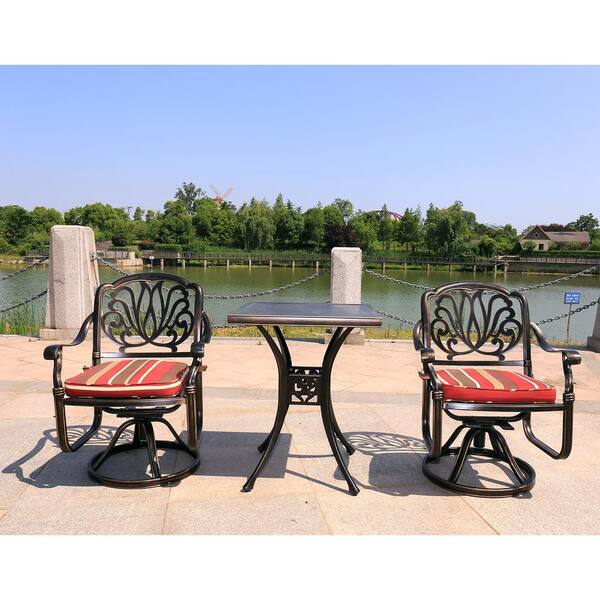 Jade 3-Piece Aluminum Outdoor Dining Set with Swivel Chair and Red Cushions