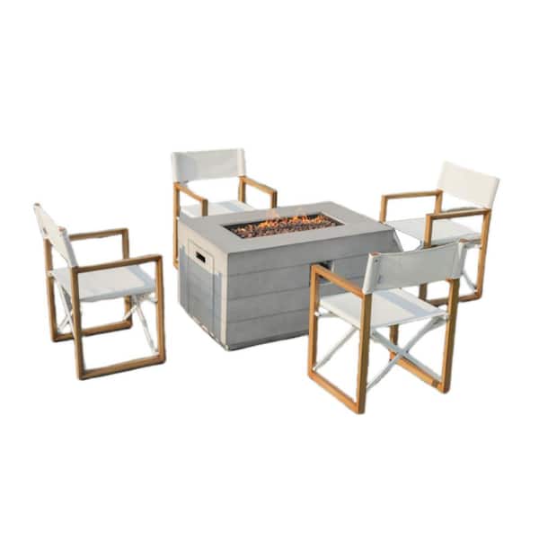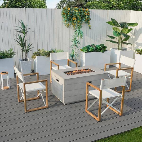 Middle 5-Piece Aluminum Rectangle Outdoor Dining Set with Grey Composite Firepit Table and Folding Chairs