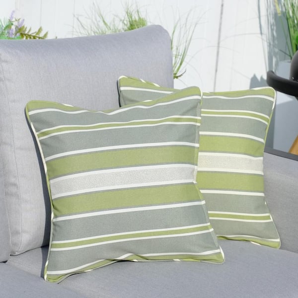 Observe Stripe Polyester Fabric Square Outdoor Throw Pillows (2-Pack)