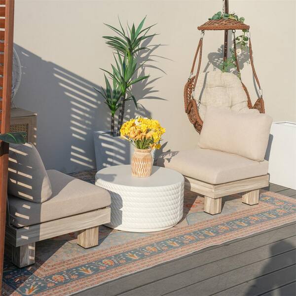 Origin 3-Piece Aluminum Patio Conversation Set with Beige Cushions, 24.25 in. W Round Magnesium Oxide Coffee Table