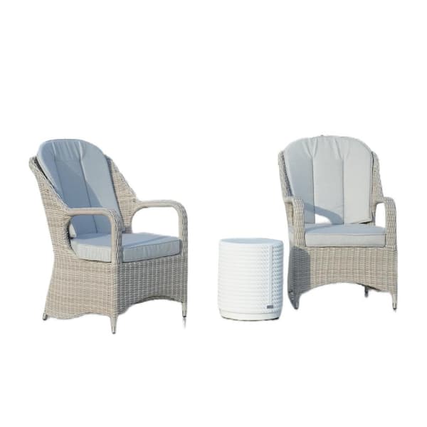 Sugar Grey Semicircle Wicker Outdoor Dining Chair with White Concrete Round Side Table (3-Pack)