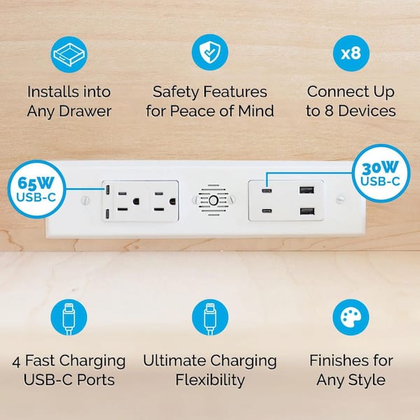 Black 15 Amp Blade Duo In-Drawer Outlet with 4 30W USB-C, 2 USB-A and 2 AC Ports