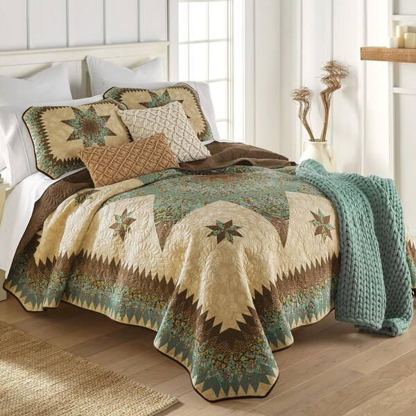 3-Piece Sea Breeze Star Brown Full/Queen Polyester Quilt Set
