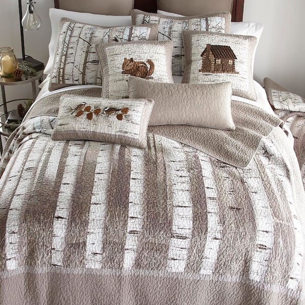 Birch Forest 3-Piece Grey Cotton King Quilt Set