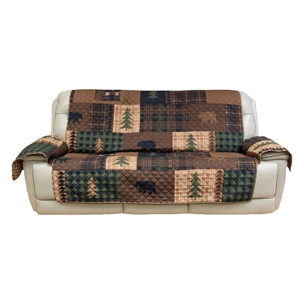 Brown Bear Cabin Tan and Green Polyester One Piece Sofa Furniture Slipcover