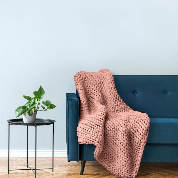 Chunky Knitted Mauve Acrylic Throw Blanket
