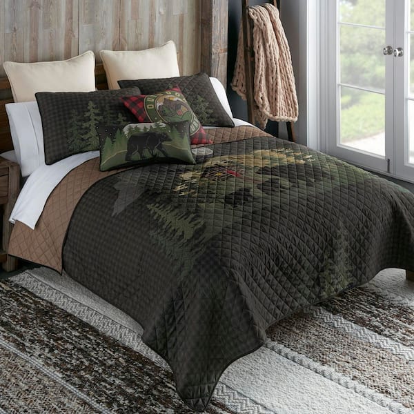 Foothills 3-Piece Black and Green Polyester Queen Quilt Set