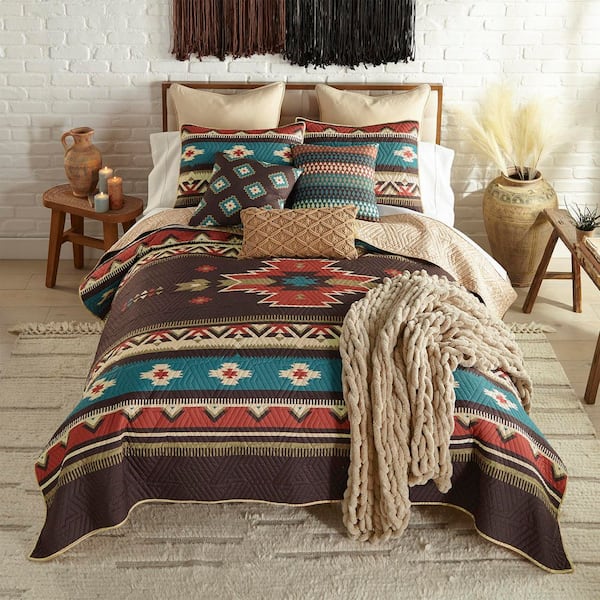 Mahogany Desert 3-Piece Brown and Red Polyester King Quilt Set