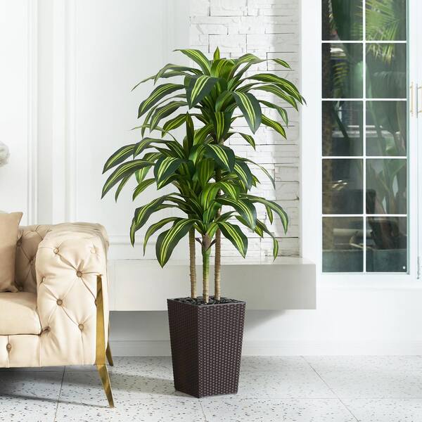 5 ft. Artificial Dracaena Tree Coffee Planter Faux Plant for Home and Office Decor Indoor/Outdoor, Yello-Green Fake Tree
