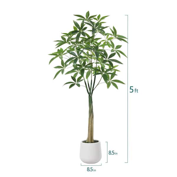 5 ft. Artificial Ficus Tree with Round White Planter, Pre Potted Faux Money Tree for Home Decor