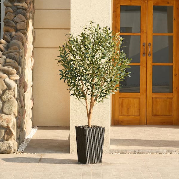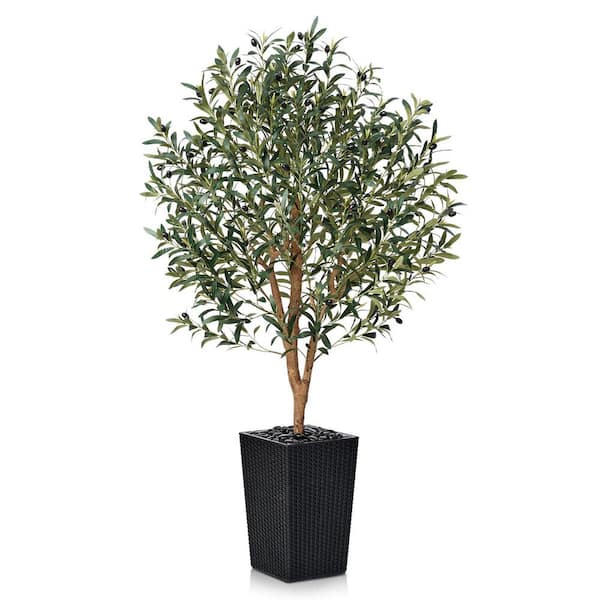 5 ft. Artificial Olive Tree Indoor/Outdoor Black Planter - Real Wood Trunk,Faux Plants for Home Office Decor Living Room