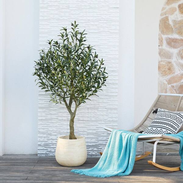 5ft.Artificial Olive Tree-Faux Silk Plant Fake Tree for Home Office Decor Black pot Indoor\Outdoor Plant Living Room