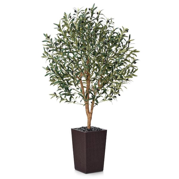 5ft. Artificial Olive Tree Indoor/Outdoor Coffee Planter - Real Wood Trunk,Faux Plants for Home Office Decor Living Room