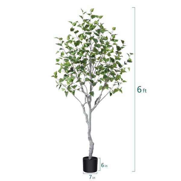 6 ft. Artificial Betula Tree in Pot, Pre Potted Faux Greenery Plant for Home Decor, Big Fake Plants
