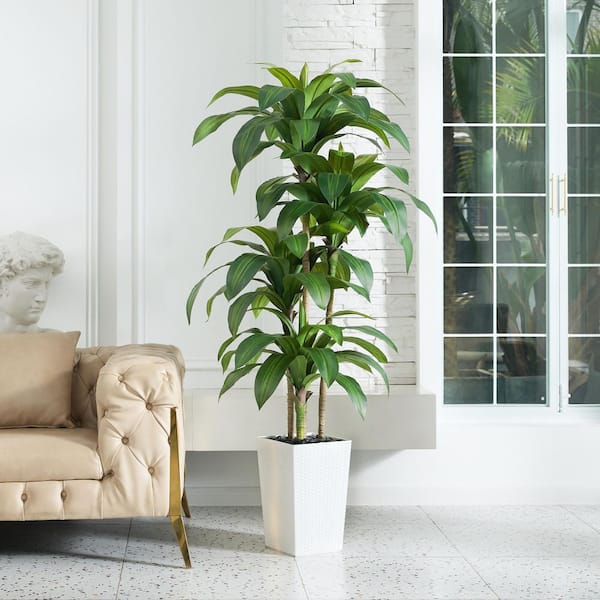6 ft. Artificial Dracaena Tree with White Planter, Faux Plant Fake Tree for Home and Office Decor Indoor/Outdoor