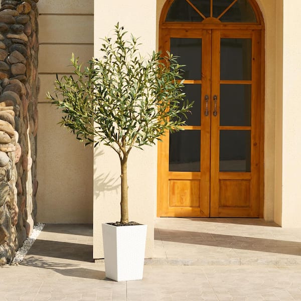 6 ft. Artificial Olive Tree Indoor/Outdoor w/ White Planter - UV-Resistant Faux Plants for Home Office Living Room Decor
