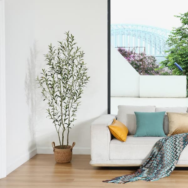 6 ft. Artificial Plastic Olive Tree in Pot, Pre-Potted Faux Greenery Olive Plant for Home Decor