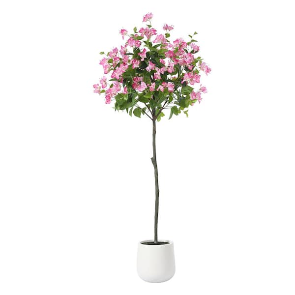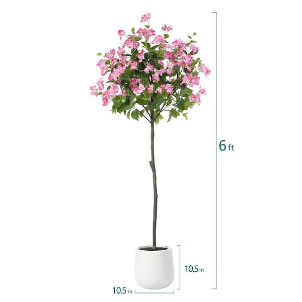 6 ft. Faux Bougainvillea Flowers Tree with White Tall Planter for Outdoor Home Office Decor