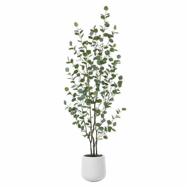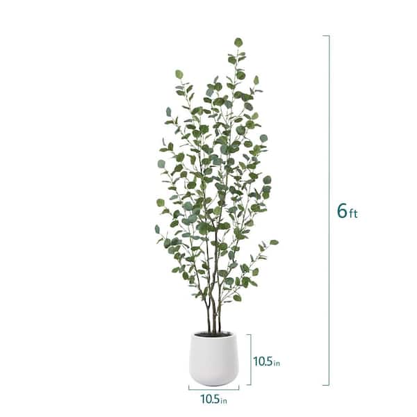 6 ft. Faux Eucalyptus Tree with Oval White Planter, Pre Potted Artificial Eucalyptus Plant for Home Decor