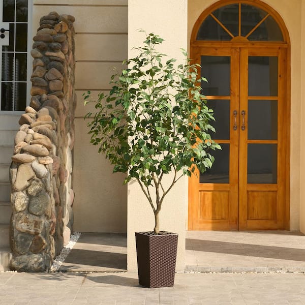 6ft.Artificial Ficus Tree Indoor/Outdoor,Fake Tree with Coffee Planter for Home Office Decor,Living Room & Modern Spaces
