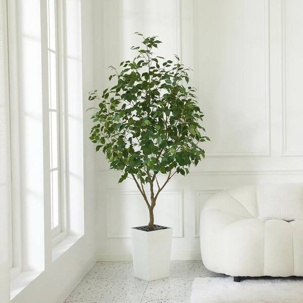 6ft.Artificial Ficus Tree Indoor/Outdoor, Fake Tree with White Planter for Home Office Decor,Living Room & Modern Spaces