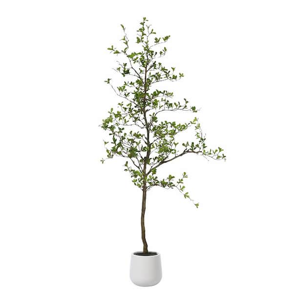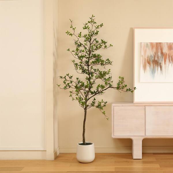 7 ft. Artificial Black Olive Tree in White Pot, Tall Faux Shady Lady Tree for Indoor Home Decor