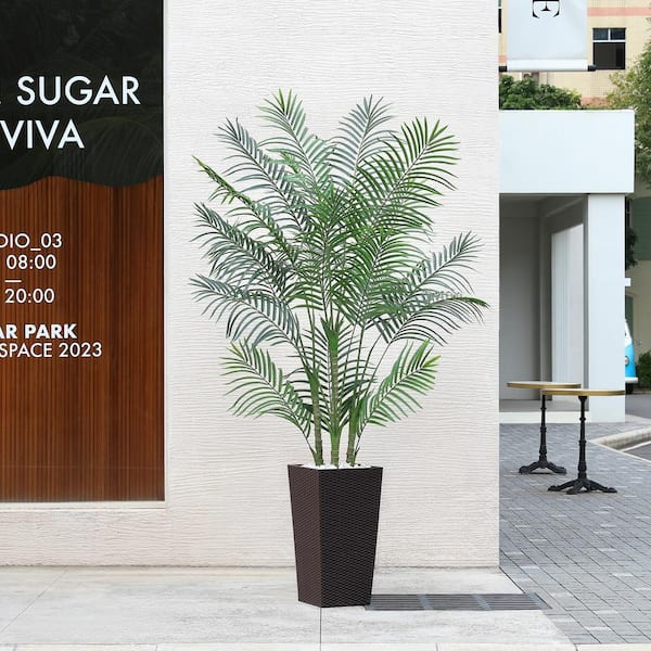 7 ft.Artificial Palm Plant UV Resistant with Brown Tall Planter, Faux Palm Plant for Outdoor Decor