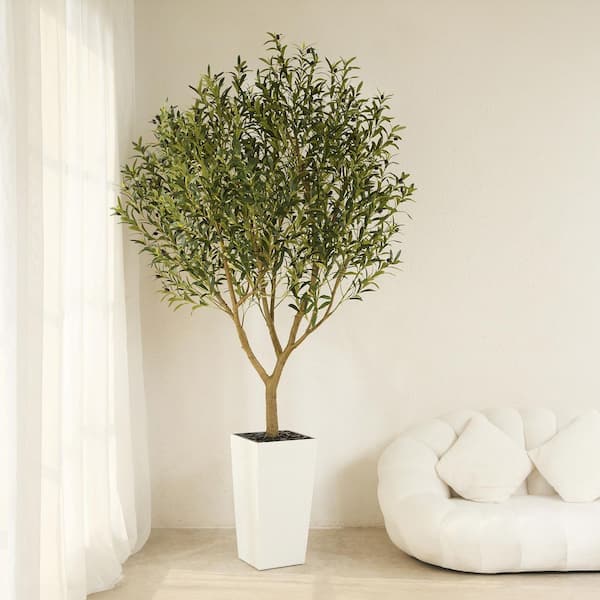 8 ft. Artificial Olive Tree Indoor/Outdoor w/ White Planter - UV-Resistant Faux Plants for Home Office Living Room Decor