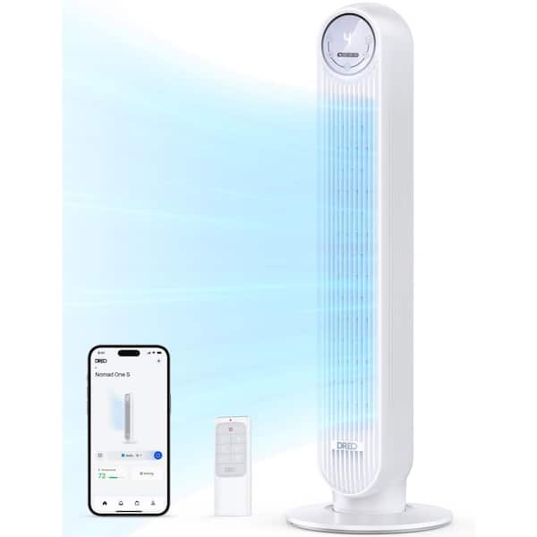 36 in. Nomad One S Tower Fan, 28 BD Quiet Fan, 90° Oscillating with Remote and Wi-Fi Voice Control in White