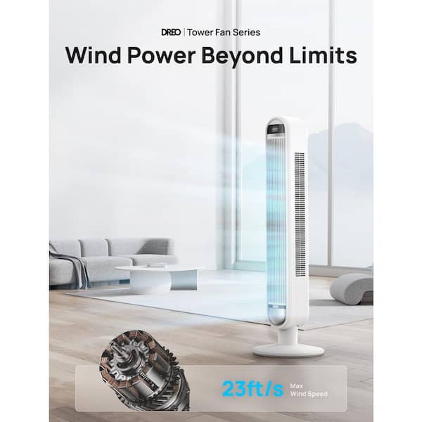 42 in. Smart Tower Fan with Remote, 6-Speed, 12 H Timer and 90° Oscillation, Wi-Fi Voice Control in White