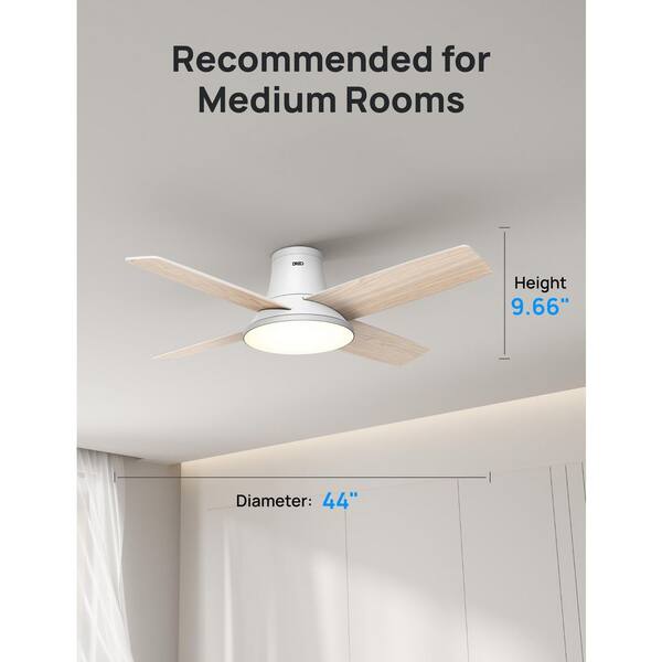 44 in. Indoor White Smart 4-Blade Ceiling Fan with Timer, Light and Remote