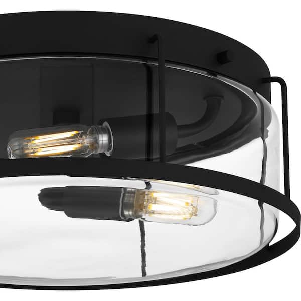 13.25 in. 3-Light Matte Black Flush Mount with Clear Glass Shade