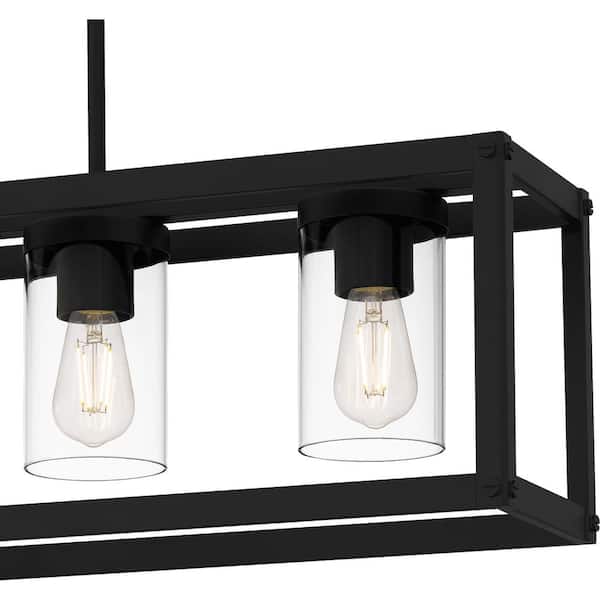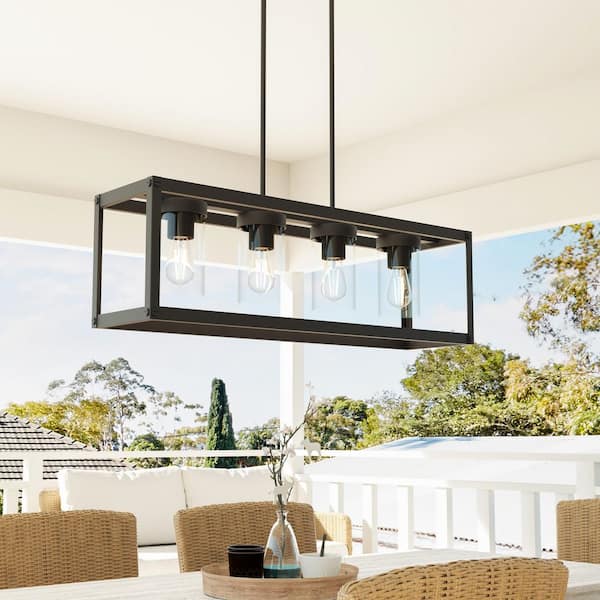 4-Light Matte Black Outdoor Linear Chandelier with Clear Glass Shades