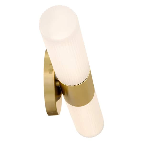Astra 22 in. Gold Integrated LED Vanity Light Bar with Etched Ribbed Glass Shade