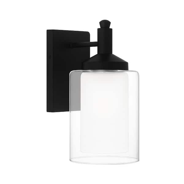 Jaylin 6 in. 1-Light Matte Black Sconce with Clear and Frosted Glass Shade